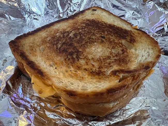 We were still super worried about B’s stomach but he kept saying he was hungry so we had to feed him. We kept it simple and got him a grilled cheese. The Plain Grilled Cheese is just American cheese and white bread. Super simple. We only gave him half which he finished off pretty quickly. It was a pretty solid grilled cheese and he quickly asked for the second half.