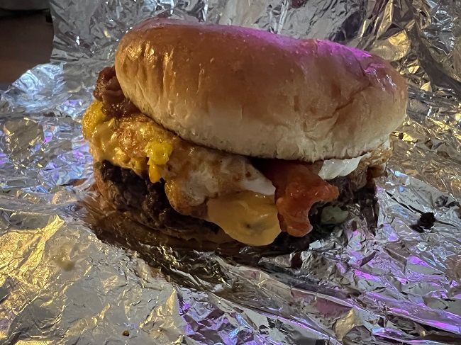 He eventually said he was hungry. So was I. We weren’t going to bring him to a restaurant and I happened to find a burger shop just down the street from our hotel.