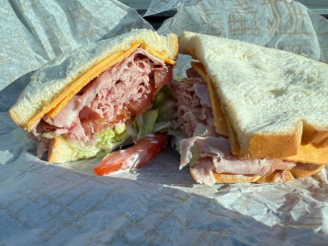 I unwrapped the sandwich right away. The Bavarian Ham is made with house made Shepards Bread, ham, cheddar cheese, lettuce, tomato, honey mustard and mayo. The dominant flavor is mayo which is a bummer. There is a huge pile of thinly sliced ham but mayo on both sides of the bread drowns out any of the other flavors. I wasn’t even sure there was honey mustard on the sandwich until I looked then I got a bit of a tanginess from that. The sandwich was really good…I’m just not a big mayo guy. I’ve gotten to the point where I can appreciate it as a background note but don’t love it as the dominant flavor. A light spread is good. It was a big hearty sandwich and a great deal of a meal at $8.
