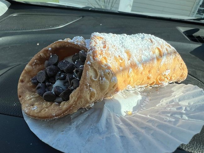 I grabbed two cannoli’s before I left. I got one for myself and brought one home to J. They were amazing. The fried pastry dough shell was flaky and fall apart delicious. The creamy ricotta filling was smooth and tasty. There were a lot of chocolate chips on each end of the tube to tack on that sweet chocolate flavor. When I got two, my intention was to bring one home to J. I did that but man was it hard not to eat the second one.