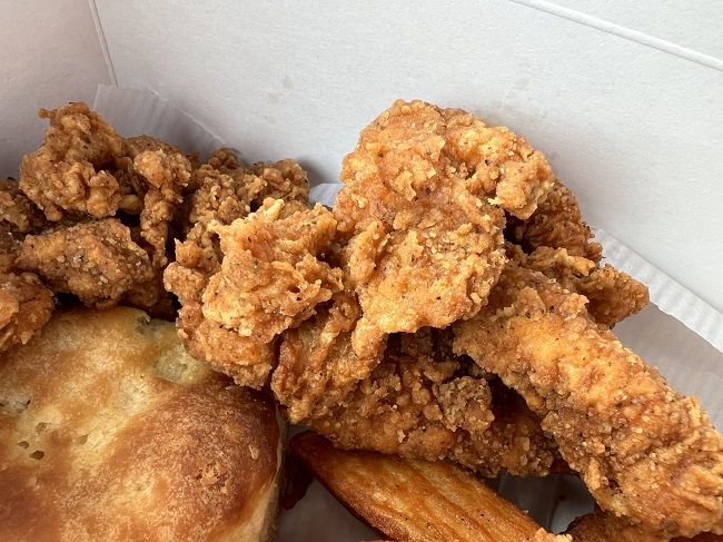By the time I got back to the chicken counter, my meal was boxed up. The lady checked her screen to make sure I had paid then handed me the box so we could get back on the road.