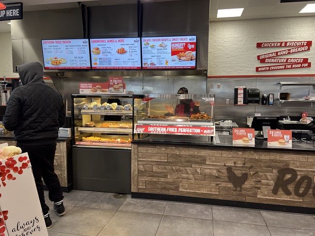 I ordered the 3 piece chicken tender combo which came with a side and a biscuit. I picked the potato wedges. I was handed a receipt then went to the cash register to pay. I had a lot of extra stuff so the bill was pretty high but my chicken meal was right around $11.