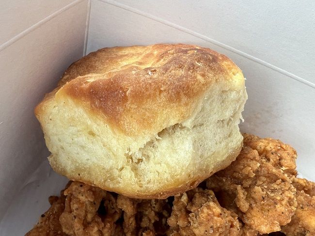 The biscuit definitely wasn’t fresh. It was a little hard. Still had a delicious buttery southern biscuit flavor. Just had probably been out of the oven for a while.