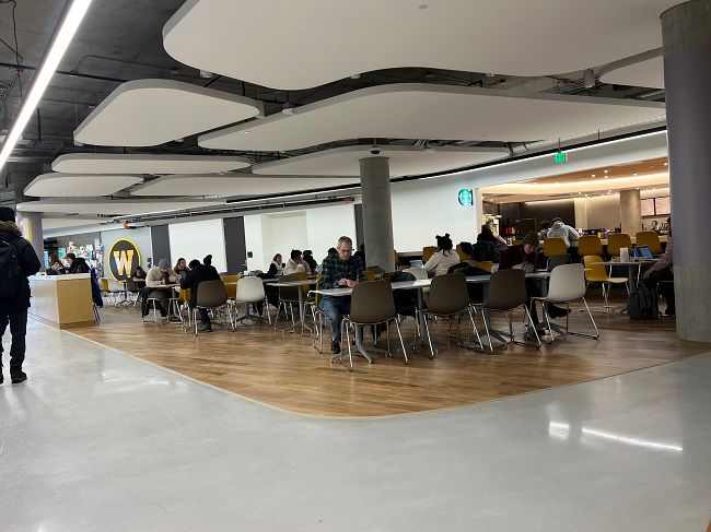 There is a pretty large seating area in this food court area in the bottom floor of the student center. I decided to just grab my box and head back to the office.