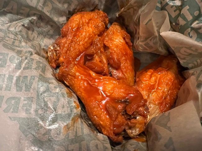 The Hot Buffalo wings are hot, but not too hot. I crave Buffalo sauce pretty much every night. I don’t know why but it’s a pretty recent thing. The Buffalo sauce from Wingstop always satisfies that craving.
