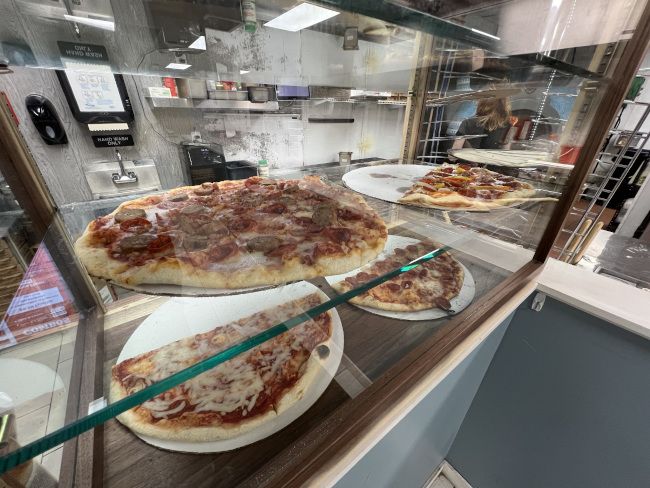 If you’re not looking for a whole pizza, they also have slices ready to go. There’s a warming cabinet near the cash register with several options.