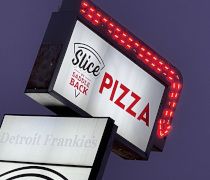 Slice by Saddleback has two locations in Lansing. One is on the west side in Delta Township. I chose the South Lansing location on Pennsylvania Avenue and Alden Drive. The restaurant was most recently a Halal Food Grocery store that also had a pizza and sandwich operation. Before that, when I lived in the area, it was a liquor store.