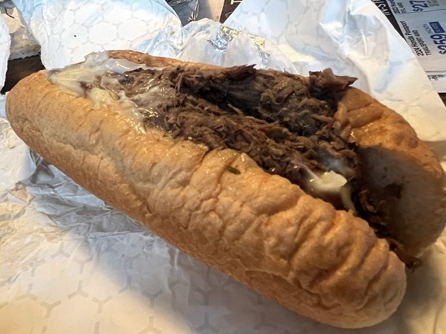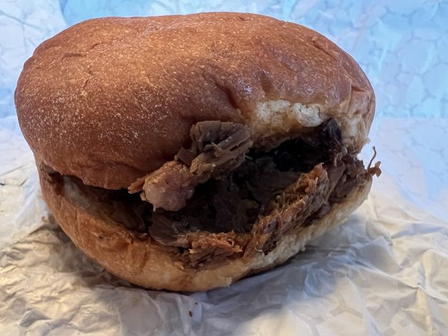 When I got back to my parents house, I started unwrapping sandwiches. I started with the Chopped Beef BBQ. I think I’ve made it known I prefer sliced brisket over chopped and that holds true with this sandwich. It is a very dense sandwich. The bread is dense and the meat is packed in tightly. The flavor is fine but it’s hard for me to override my brain who wants to believe this is a pulled pork sandwich, not a beef sandwich.