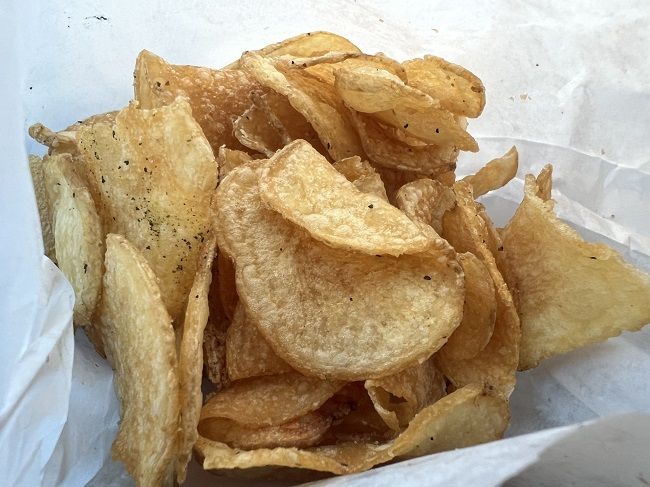 I wasn’t going to eat the sandwiches in the car because I figured I’d end up wearing most of them, but I grabbed the bag of chips knowing that was something I could snack on during the drive home. The chips are homemade and come spilling out of a paper bag. There’s a salt and pepper seasoning on them to provide that extra kick of flavor, but it’s really hard to go wrong with home made chips. They were fantastic.