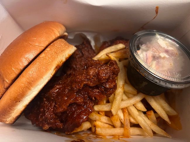 I put in an order for the 3 Nashville Tenders which comes with- a bun, fries, and slaw. The cost was right around $17. It felt like a lot for three tenders until I actually saw what came in the box.