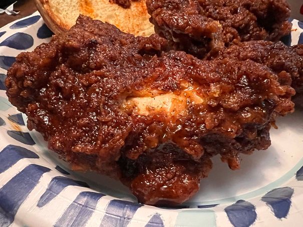 The tenders were huge. These aren’t kid’s meal chicken tenders. They’re big, juicy pieces of meat fried up super crispy and covered in a Nashville hot sauce. I took the meal home to eat and it was probably a good thing I did. I ended up getting out a paper plate and a fork to slice through these massive pieces of meat. The chicken was really juicy and really tender for such big pieces of white meat. The breading was super crispy even though it was covered in a thick spicy Nashville hot sauce. The sauce was spicy but not overpowering. It had a really good heat that didn’t burn the mouth but had a ton of that peppery flavor. The bun kind of confused me at first but I eventually cut up a few pieces and used it to make a sandwich. I mean, I had a toasted bun just sitting there so why not?