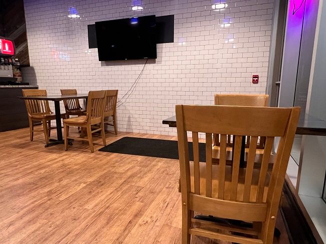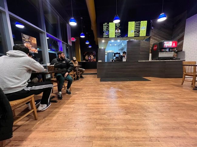 There a handful of tables for dine-in and there were a couple of groups, even fairly late on a Tuesday night, that were grabbing something to eat as they were working on what looked to be some kind of group project. One thing I’ve noticed that has made it through all of the different conecepts over the years is the subway tile wall. What was once home to the Sliders sign is now a spot for a TV to hang.
