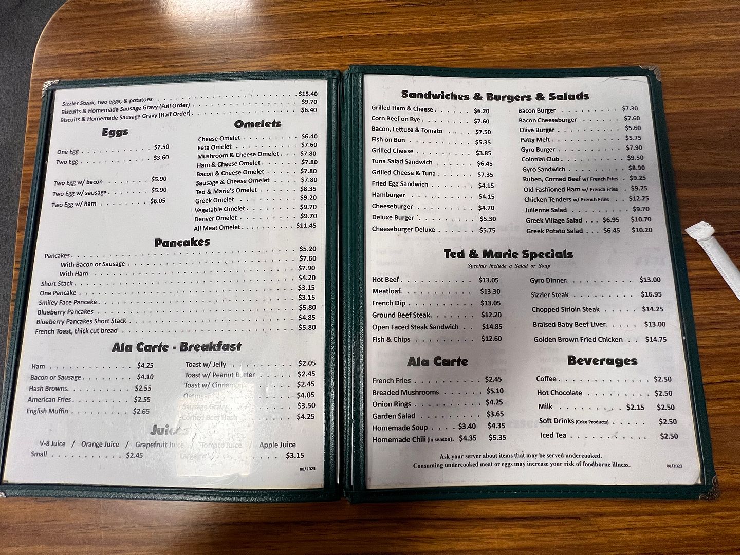 Ted & Marie’s is a classic breakfast/lunch diner. The restaurant has been around since the early 1970’s and they likely haven’t changed much over the last 50 years.