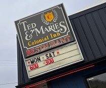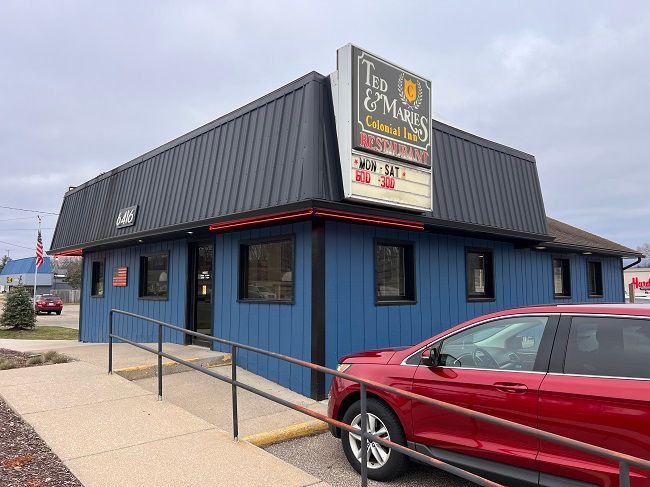 Ted & Marie’s Colonial Inn is on Stadium Drive in Oshtemo Township at that weird intersection where Stadium meets Parkview. The small restaurant is right up against the road in the Harding’s parking lot. The blue building with the black roof is hard not to see when you’re sitting at that stoplight.