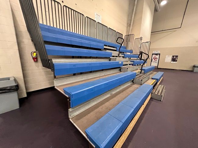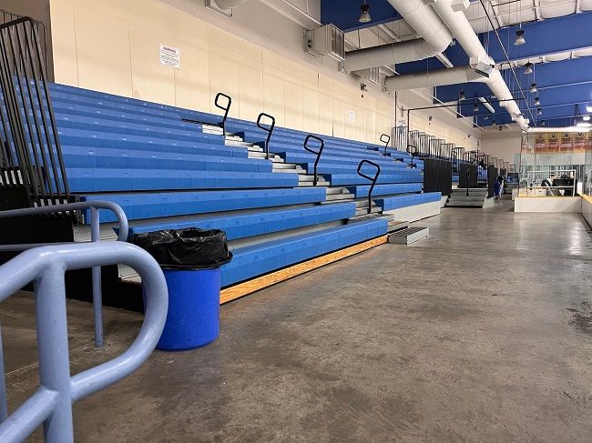 The bleachers are the type you’d see in a high school gym. They’re the kind that can be folded up against the wall. They make a lot of noise when you walk up and down them. We made sure to warn my parents, who drove in from Illinois, that this rink can be really cold. They have heaters but they never turn them on.