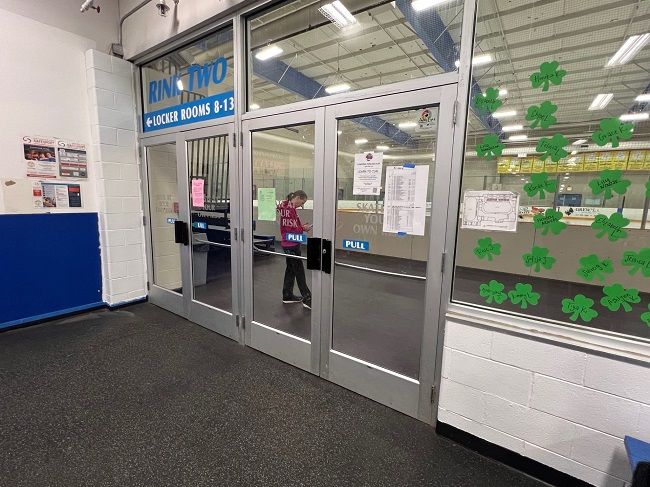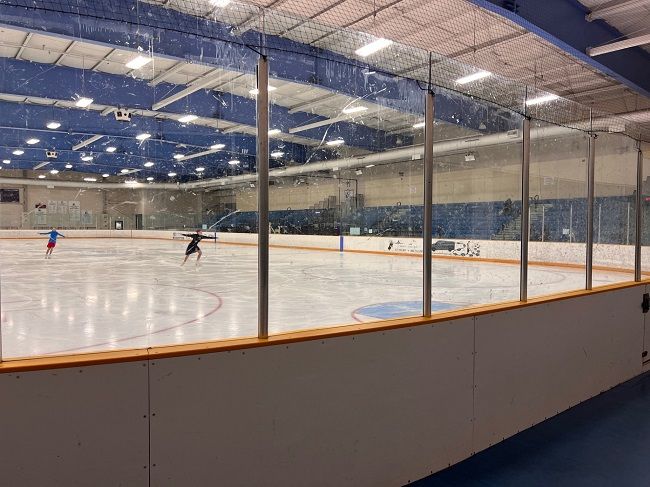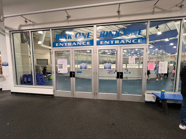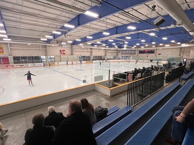 The thing I really don’t like about this rink is the seating is on the opposite side of the lobby. You have to walk all the way around to get to the bleachers. They closed off two entrances as skater/coaches only…and enforced it. I tried to pop in to watch one skater from our club who was already on the ice and they immediately kicked me out. By the time I would have made it to the “spectator entrance” it would have been too late.