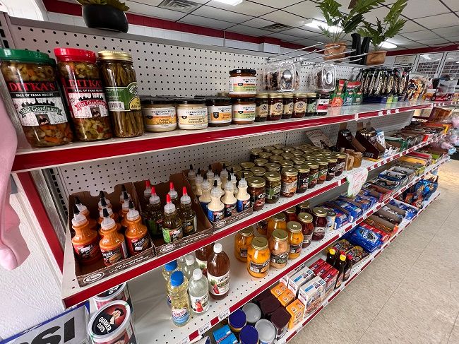 The other side is the market and deli. There’s some shelving with some higher end pantry staples that takes up a big chunk of the space.
