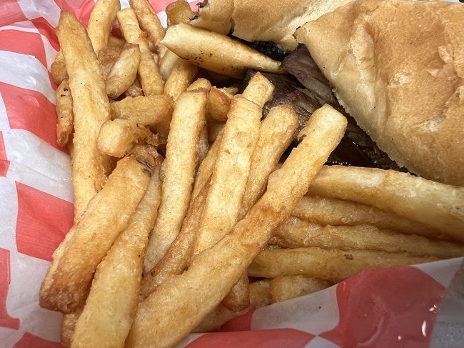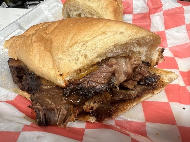 There’s a lunch counter type area that overlooks the kitchen. There was no one else in the store at the time so I sat there and picked up a menu. I told the lone employee running both the front and back of house that I wanted to put in an order to go for a Smoked Brisket Sandwich with an order of fries.