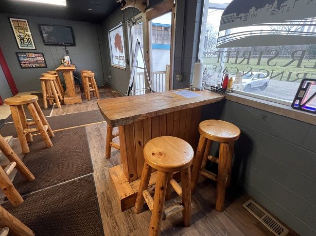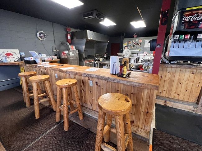 Since I got fries, it was going to take a few minutes to prepare. I took a seat in the small dining room just inside the door. The aesthetic is all wood paneling and solid wood bar stools that weren’t super comfortable. It’s a cool look but if I was staying to eat, I probably would have just stood at the table to eat.
