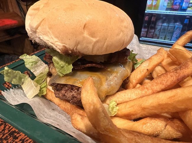 I ordered a Bacon Cheeseburger with lettuce, pickles, and mustard. This sandwiches come with chips but I upgraded to the fries.