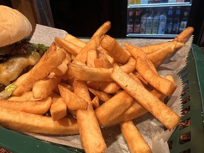 I always love burger from places like this. The flat top they’re cooked on always has so much flavor. The lounge has been open since the early 70’s and that flavor has just built up over the years. The burger is a pretty loosely packed patty topped with melted cheese and really crispy bacon. I added on lettuce, pickles, and mustard for an extra crunch and zing. The bread is pretty simple white bun that has been toasted. It’s a pretty simple burger but a really tasty one. When I think of cheap pub burgers, this is what I like to imagine.