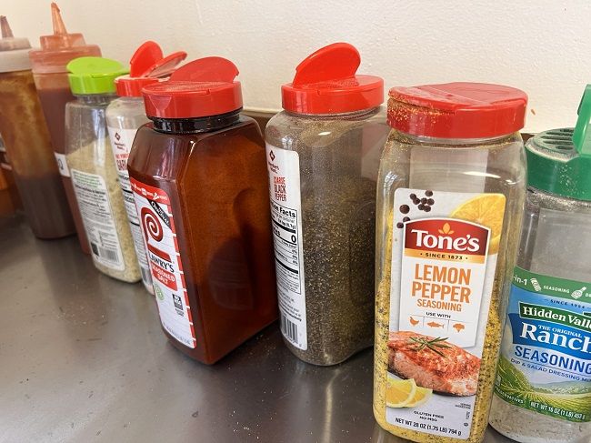 I needed to get back to my job site so as soon as the food was ready, I grabbed the bag and started to head out the door. I stopped though because there was a table of seasoning and sauces. A lot of places ask you for fry seasoning when you order but they didn’t here. Instead, there are big bottles of seasoning left out. I stayed simple with the Lawry’s seasoning salt for the fries and added some hot sauce to my wings.