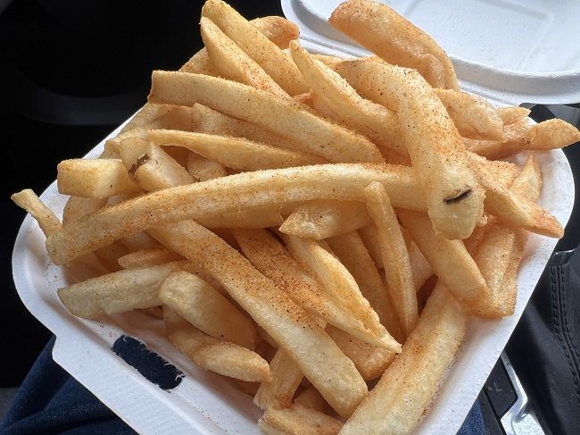 I started in on the fries on the way back to the job site. I’ve eaten at New York Fried Chicken before so I knew what I was getting. The fries are pretty simple, bland frozen restaurant fries. I’m glad I noticed the seasoned salt before I walked out of the store because it definitely improved the taste of the fries.