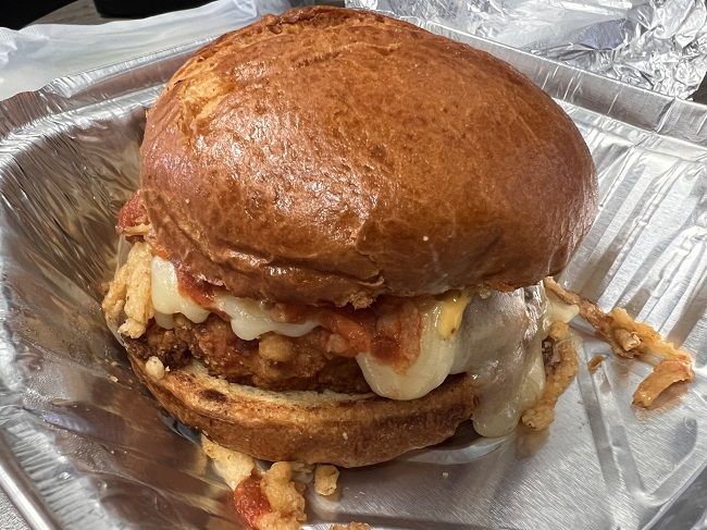 I actually didn’t order the pulled pork. I actually ordered the Chicken Parmesan Sandwich instead. The thick, juicy fried chicken breast was topped with mozzarella cheese and marinara sauce. For some reason, there were also fried onions which I don’t remember seeing on the menu (it’s not on the menu this week so I can’t confirm). The reason I didn’t order the pulled pork is because of the fried onions and I didn’t see a way to add a note in the online ordering to take them off. I was able to get the majority off the sandwich without losing too much of the stuff I actually wanted though. The sandwich was a lot more filling that I figured it would be. The chicken was really thick yet still juicy and tender.