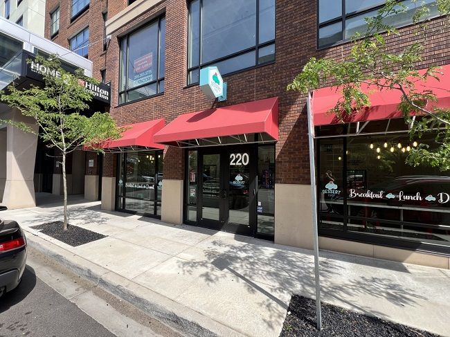 Dessert First recently opened a brick and mortar shop on Eleanor Street just to the west of Rose Street in downtown Kalamazoo. The bake shop is on the first floor the building the Hilton Garden Inn occupies. The small shop is on the Eleanor Street side of the building closer to the entrance to the Home 2 Suites. This is the first business to go in on the ground floor of this new addition to the building in what used to be a parking lot.
