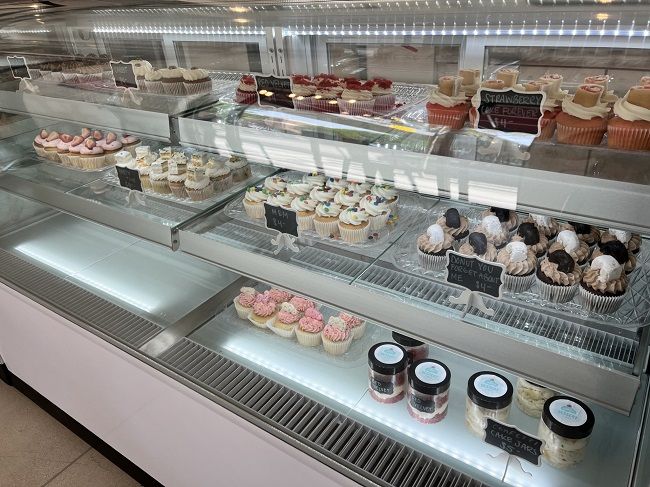 It took about ten minutes to get my sandwich and my cupcake bagged up. There’s quite a bit of seating in the brightly painted shop. There is a dining room on side of the space and some pub style metal chairs and tables on the other side. There are also rails with seating looking out over the street which gives the shop a big city feel.
