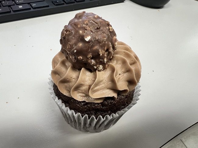 Once I figured out the sandwich I wanted, I walked over to the bakery cases. My eyes went right to the cupcakes. I asked for the Ferrero Roche cupcake. The cost came out to right around $12 for the sandwich and the cupcake.