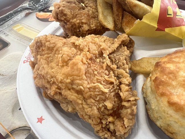 I decided to go to the chicken before the biscuits so, I guess I just lied. The chicken wasn’t the total last thing.
