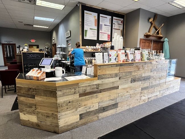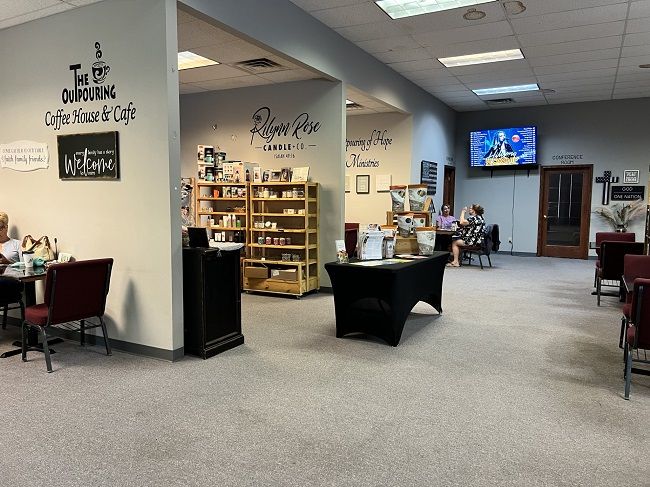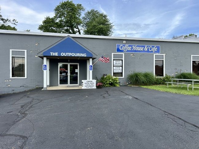 The Outpouring Cafe is on Michigan Avenue at Johnson Road right across the street from Paw Paw Middle School. The cafe is part of the larger Outpouring of Hope ministry in the large cinder block building that used to be an interior design office. The cafe takes up space on the north side of the building and is easily identifiable from the awning over the door.