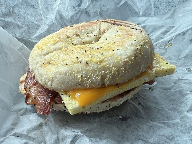 The Breakfast Sandwich at The Outpouring Cafe is really simple. It’s egg and cheese then you can pick a meat for a little bit of an upcharge. I picked bacon to make it a bacon, egg, and cheese sandwich. The bagels actually come from Big Apple Bagel. I picked the Everything Bagel…like any normal person would. The sandwich was put together pretty quickly behind the counter and warmed up before being handed over to me. I grabbed the bag and headed to my car. A bagel sandwich is easy to eat while driving and I needed to get back to the office. The sandwich was all I was hoping for. The warm toasty bagel is the perfect delivery for the breakfast staples. I say it all the time, I’m not a coffee drinker but I do love coffee houses for the simple approach many take to sandwiches. I was in the mood for a breakfast sandwich and I got a good one.
