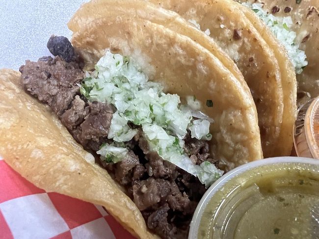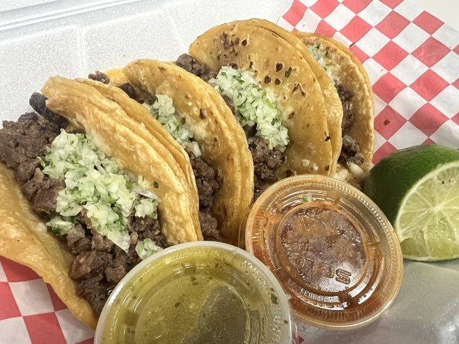 It was hard waiting to get back to Kalamazoo until I dug in to the tacos. The four steak tacos were lined up neatly in the Styrofoam to-go container with both a green hot sauce and a red one.
