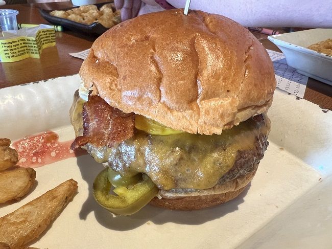 I was excited about this place, obviously, because I like burgers. This is totally my kind of place. I built my burger with the Wagyu Kobe Style beef on a brioche bun topped with sharp cheddar, an over hard egg, hickory smoked bacon, pickled jalapenos, and hot wing sauce. It was kind of a typical Breakfast burger but with some added heat. Everything about this burger was delicious. From the bakery brioche roll to the juicy, flavorful perfectly medium wagyu to the smoky bacon and crispy fried egg to the heat brought in by the jalapenos and the hot wing sauce. I always love a Breakfast Burger but getting to add on to it with a little bit of heat elevated this sandwich to someplace entirely new.