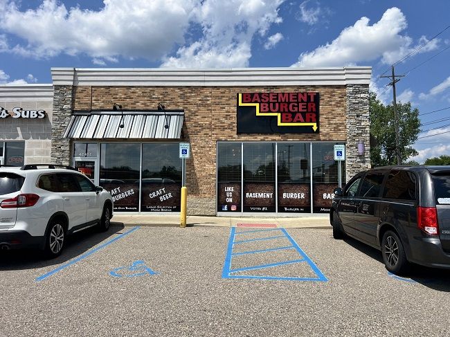 Basement Burger Bar in Canton is on Ford Road at the intersection with Lilley Road in a shopping plaza with a very tight parking lot and is very hard to cross traffic to get in to. This location is one of the three for the small Metro Detroit chain of burger restaurants. The other two are in Farmington and Downtown Detroit.
