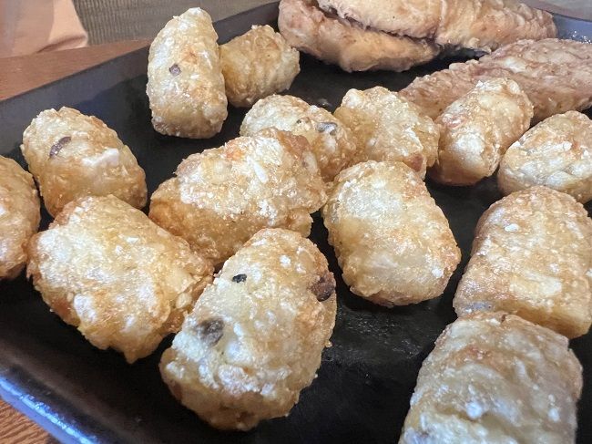 B’s plate did come with a side and we ordered the Tots thinking maybe L would eat some of them. She usually loves Tots but she was stuffed from her salad. B doesn’t typically eat sides anyway. He doesn’t like fries or tots so we thought we’d get the tots for L. J had also ordered tots for her side so we had a lot of tots on the table and only one person (J) who would eat them. J ate most of her order but B’s didn’t really get touched. I’m not a tot guy. I tried a couple but I was also pretty stuffed from my meal.