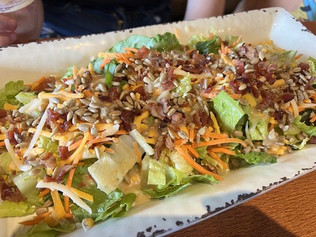 L went a totally different direction and ordered a build your own salad. She picked romaine lettuce topped with carrots, cheddar cheese, bacon bits, sunflower seed and Italian dressing. She loved this and she loved that she could customize a salad the way she wanted. She typically is stuck ordering a side salad and taking things off it but she absolutely loved the idea of being able to get exactly what she wanted. She ate about 3/4 of this large plate and said she was done….then went back a few minutes later and finished it.