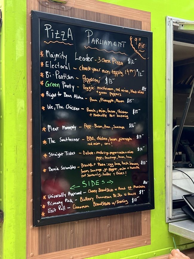 Pizza Parliament is a group of three food trucks based in Wyoming. I’ve heard things about this one because I’ve heard co-workers talk about it. I’ve never seen it in Kalamazoo before but there they were. They brought what looks to be their smaller truck but they still had a great pizza menu to choose from.