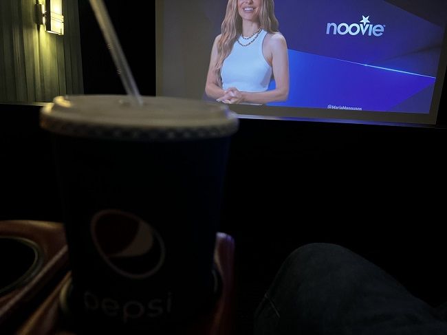 I actually timed this really well for once. B is always mad at me because we get to the theater 30 minutes before the movie starts. This time, it was just ten minutes before so the Noovie stuff had already started.