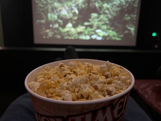 The concession area is straight in as you walk through the doors. the thing that really made the previous two theaters in this location unique was the food. It was more than popcorn and candy. KP doesn’t have quite the extensive menu that the previous theaters had. They do have some hot food but it’s more appetizers type stuff. Fried pickles, chicken tenders, mac and cheese bits. Those kind of things. We passed on all that and each got a medium popcorn plus a large drink for me and a medium icee for B. B also grabbed a box of candy which I almost didn’t notice but luckily he put it on the counter so we didn’t walk off without paying for it. The tickets to the matinee, popcorn, drinks and candy came out to just under $50.