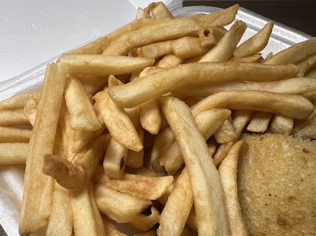 I started eating the fries as soon as I got back just to uncover the sandwich so I could get to it. The fries were nothing special. They’re frozen restaurant fries. There was a lot of them though. They could have used a little more salt and maybe some mustard to dip them in. I was hungry enough I didn’t care about either of those things though. Fries are fries.