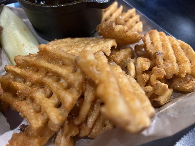 The sandwich is supposed to come with home made BBQ chips but I upgraded my side to the Waffle Fries. The potatoes were super crispy with a little bit of seasoning but I upgraded to fries because I wanted something to dip into the BBQ sauces that were on the table when we sat down.