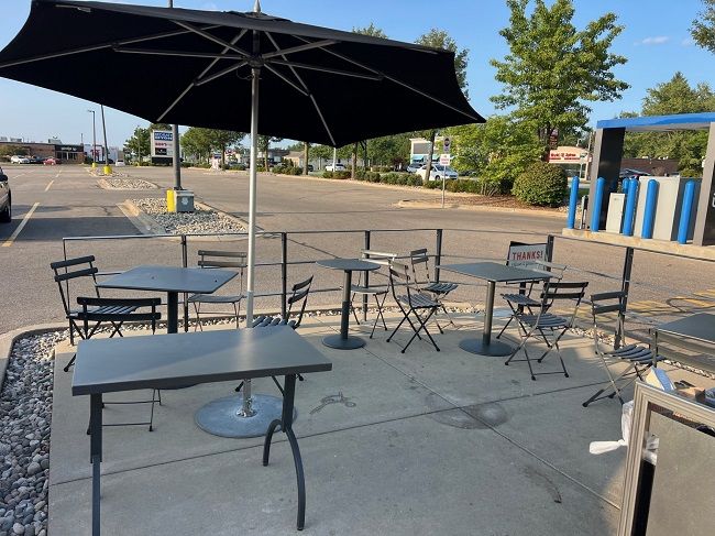 Instead, I went to the patio where they had some metal tables and chairs set up that weren’t being used. I just decided to quickly eat there before heading over to watch the kids skate.