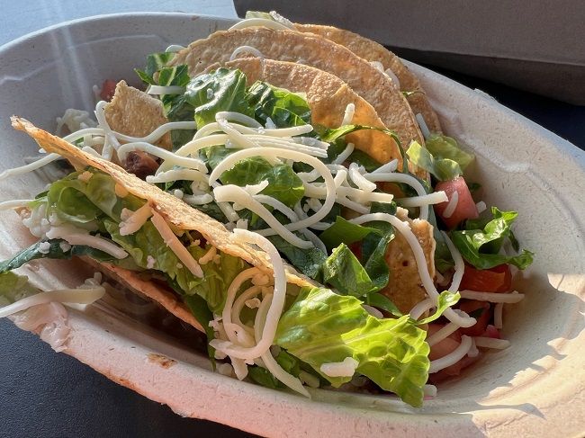 I ordered the three tacos instead because I like tacos. The shell options are soft flour or hard shell corn. I’m a soft corn tortilla person and I don’t really like flour at all, so I ordered the hard shell corn tortilla like I’m ordering from Taco Bell. I went with the steak and topped it with fresh tomato salsa, cheese, and lettuce. The three tacos were really simple and not awful, but could be better. The corn tortilla shell was bland, the meat actually had quite a bit of delicious flavor and the pico was really fresh tasting. The tacos were fine and they’re on par with Qdoba but places like this really aren’t my favorite place to get tacos from.