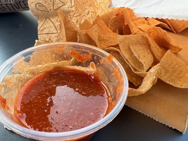I also got a side of chips and tomatillo-red chili salsa. The chips, again, were kind of stale and really nothing special. The salsa had a great peppery kick to it and was the only reason I kept eating the chips. Once it was gone, I tossed the rest of the bag.