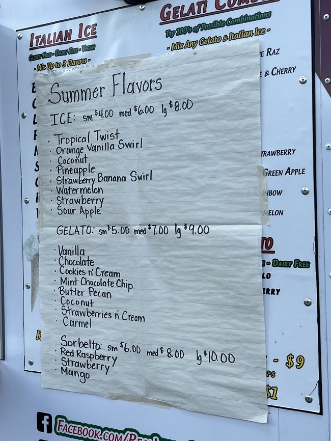 There were a couple of food trucks at nearby Island Hills Golf Course right outside of Centreville. One of my favorites, MaMazonni’s Italian Beef was there but we had just eaten lunch. What we ventured out for this time was Italian ice and gelato.