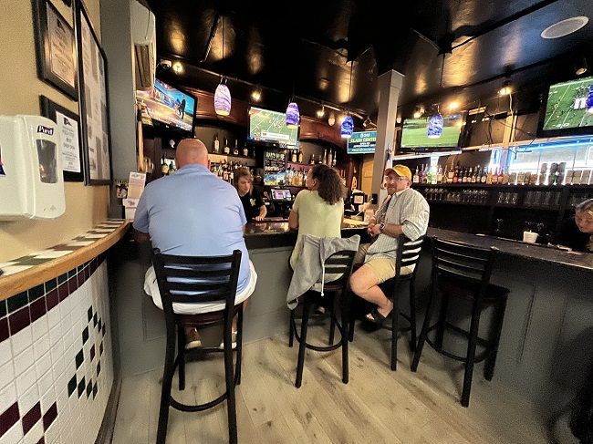 The restaurant is much smaller than I would have expected (or remembered). The bar is tucked in to the first room you come in to. It’s a small L-shaped bar with only about half a dozen seats with several TV screens hanging on the back walls.