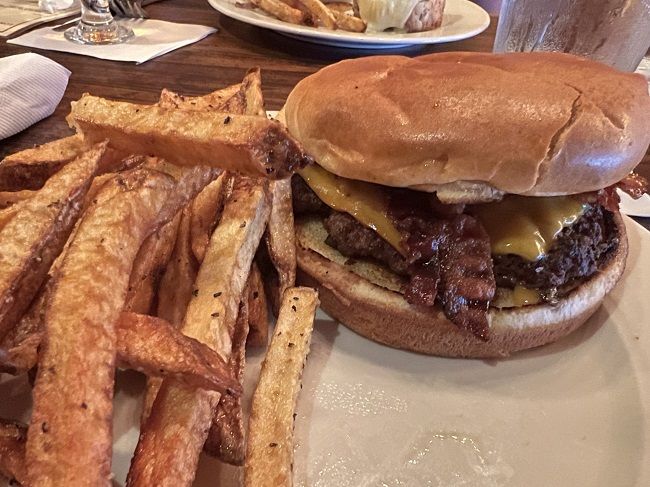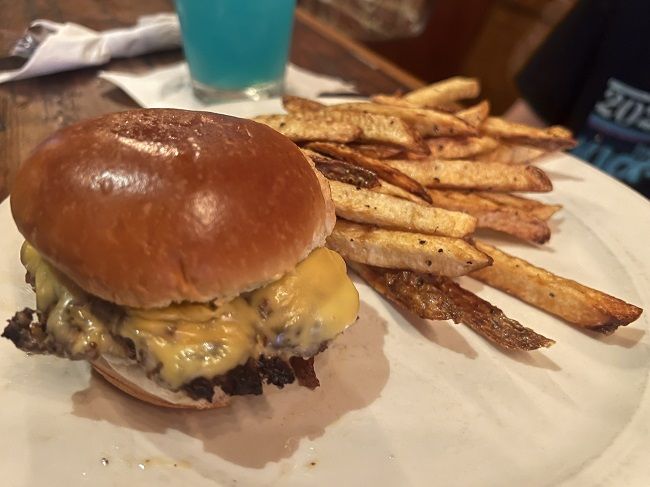 Since the Cuban wasn’t available, I went with the Longship Build Your Own Burger. I kept it simple just adding cheese and bacon (both for extra costs). The sandwich is a 1/3 lb smash burger on a grilled brioche bun. This a pretty classic cheeseburger. Every piece of it is good. The cheese is melty. The bacon is crispy. The burger patty is juicy. The sandwich came with delicious house made fries. These are my favorite kind of fries. They’re a little greasy but somehow still have a crunch to them. I could eat these all day.